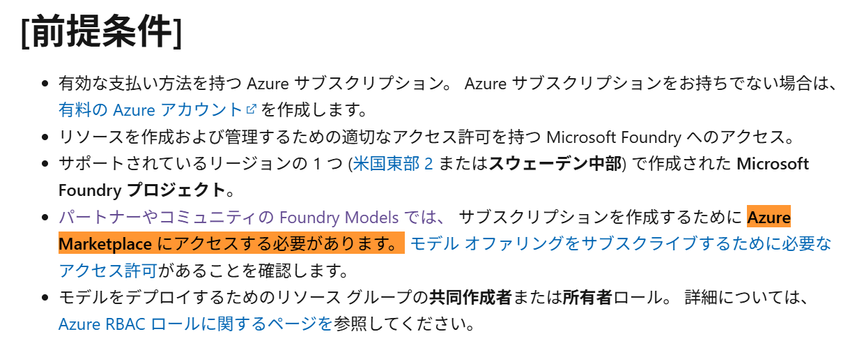 (分かりづらすぎると思いますが、、) 一応公式ドキュメントには、Microsoft Foundry上で提供されているClaudeモデルがMarketplace製品であることを暗に示すような内容が書かれています。