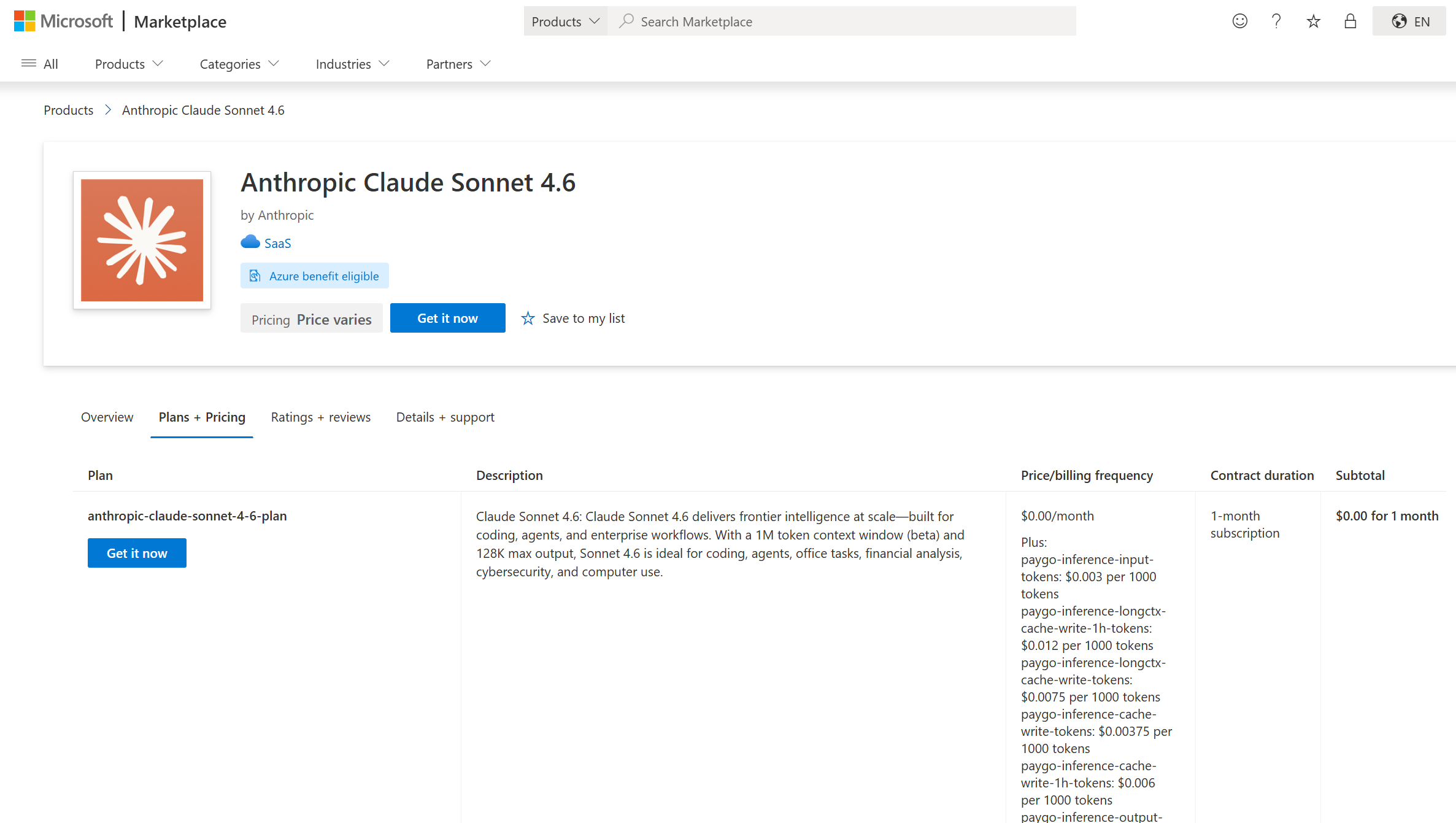 これらの情報から、ClaudeはMarketplace製品であることが示唆はされていますが、ぱっと見で判断するのは難しい気がします。
