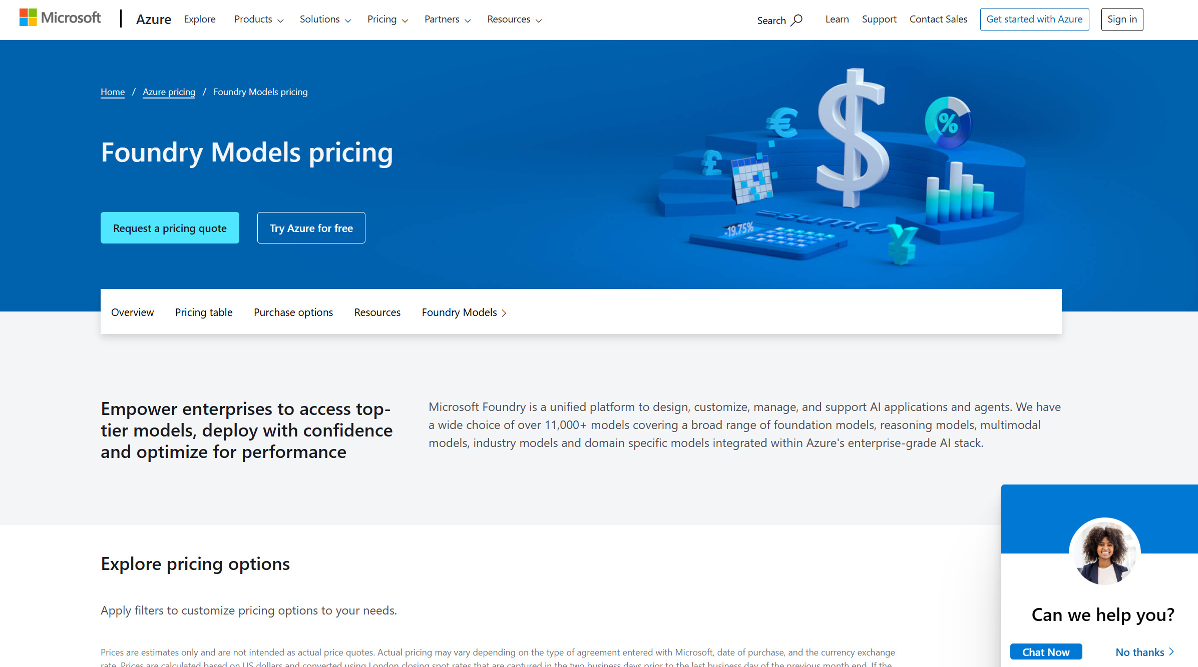 また、Microsoft Foundry Portal上のPricingを確認すると、、