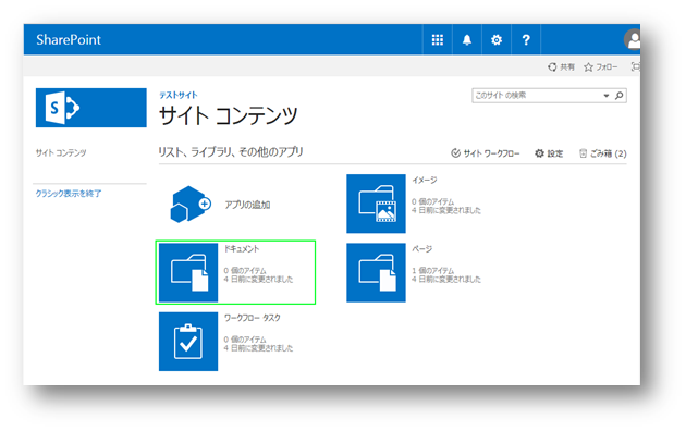 右側の画面にリストとライブラリの一覧が表示されるので、[ドキュメント]を選択して下さい。