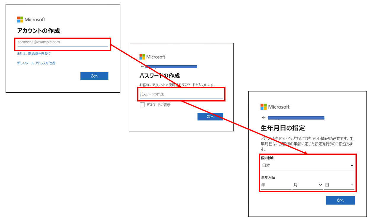 - 続いて、アカウントを持っていない方は作成画面へと遷移します。サクサクっとメールアドレスと任意のパスワードと生年月日を登録しちゃいましょう!