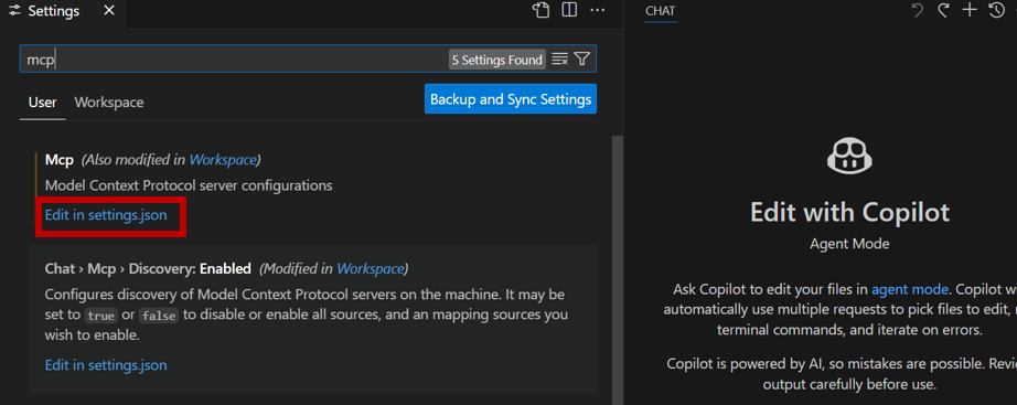 以下のようにVisual Studio CodeでMCPサーバーの設定を行ってください。