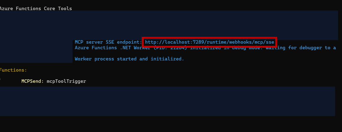 Functionのプロジェクトを実行すると、ローカルでMCPサーバーが立ち上がります。
