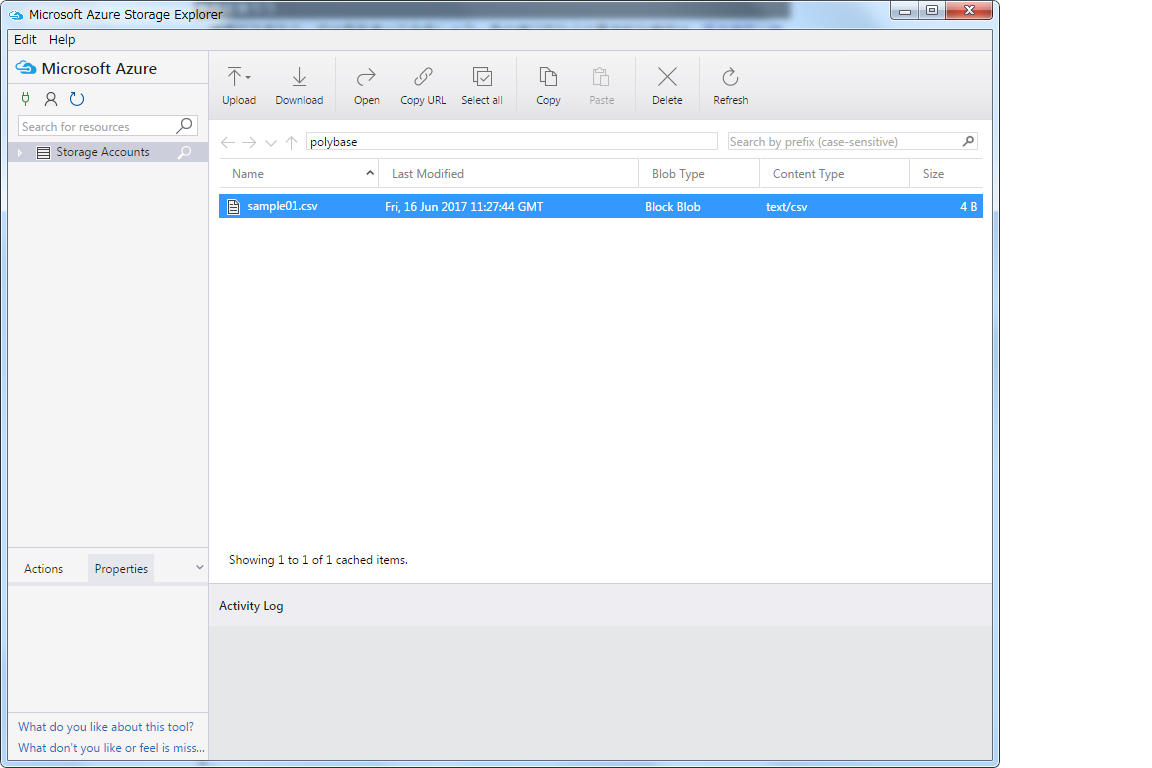 BLOBストレージへのファイルアップロードは、Microsoft Azure Storage Explorerが便利です。