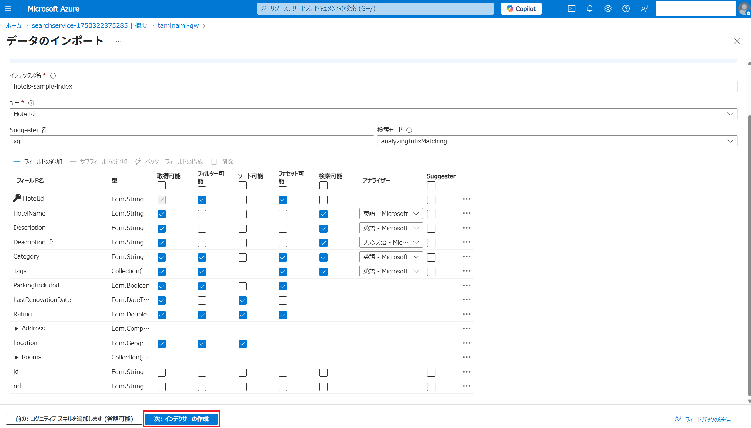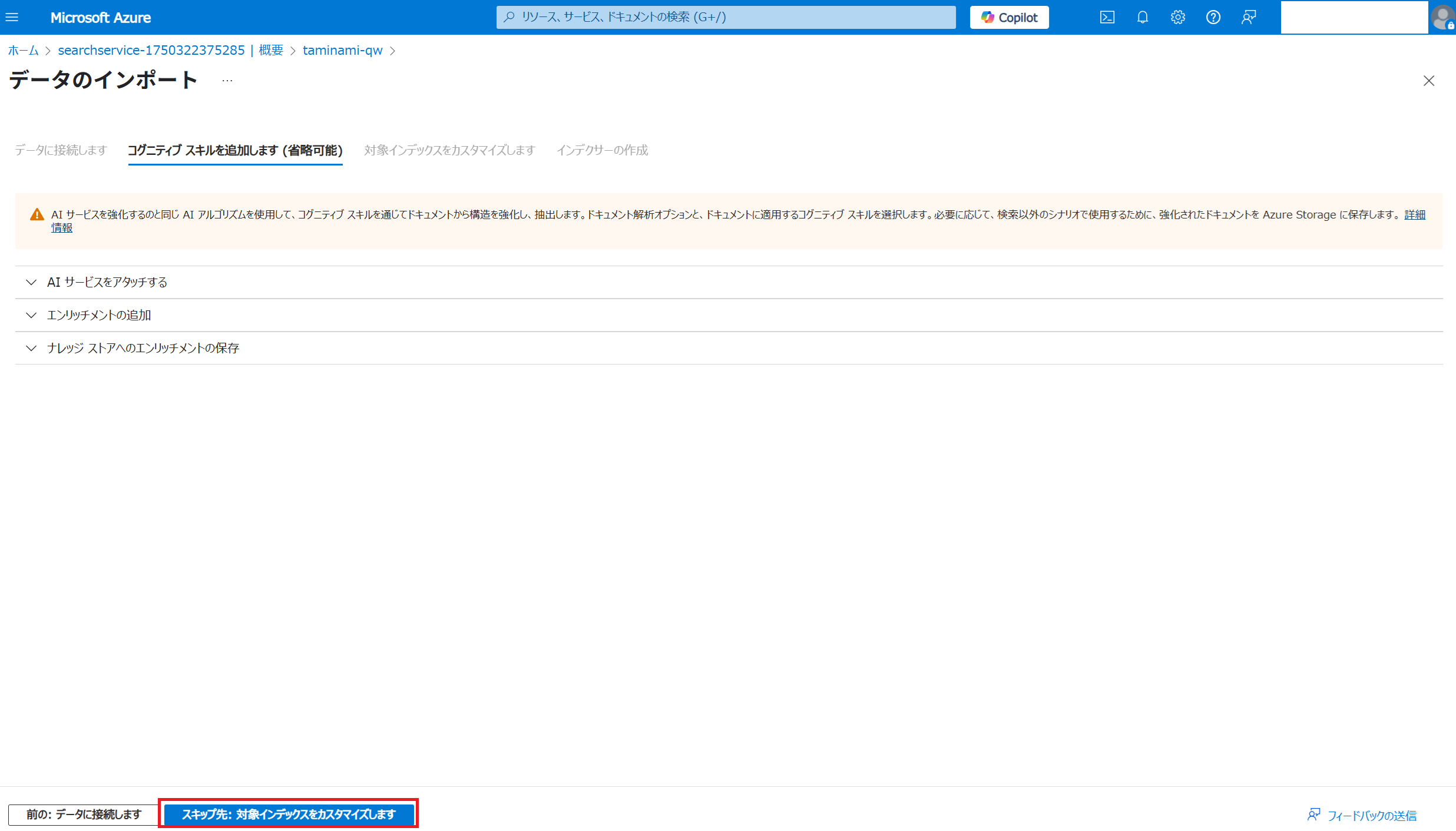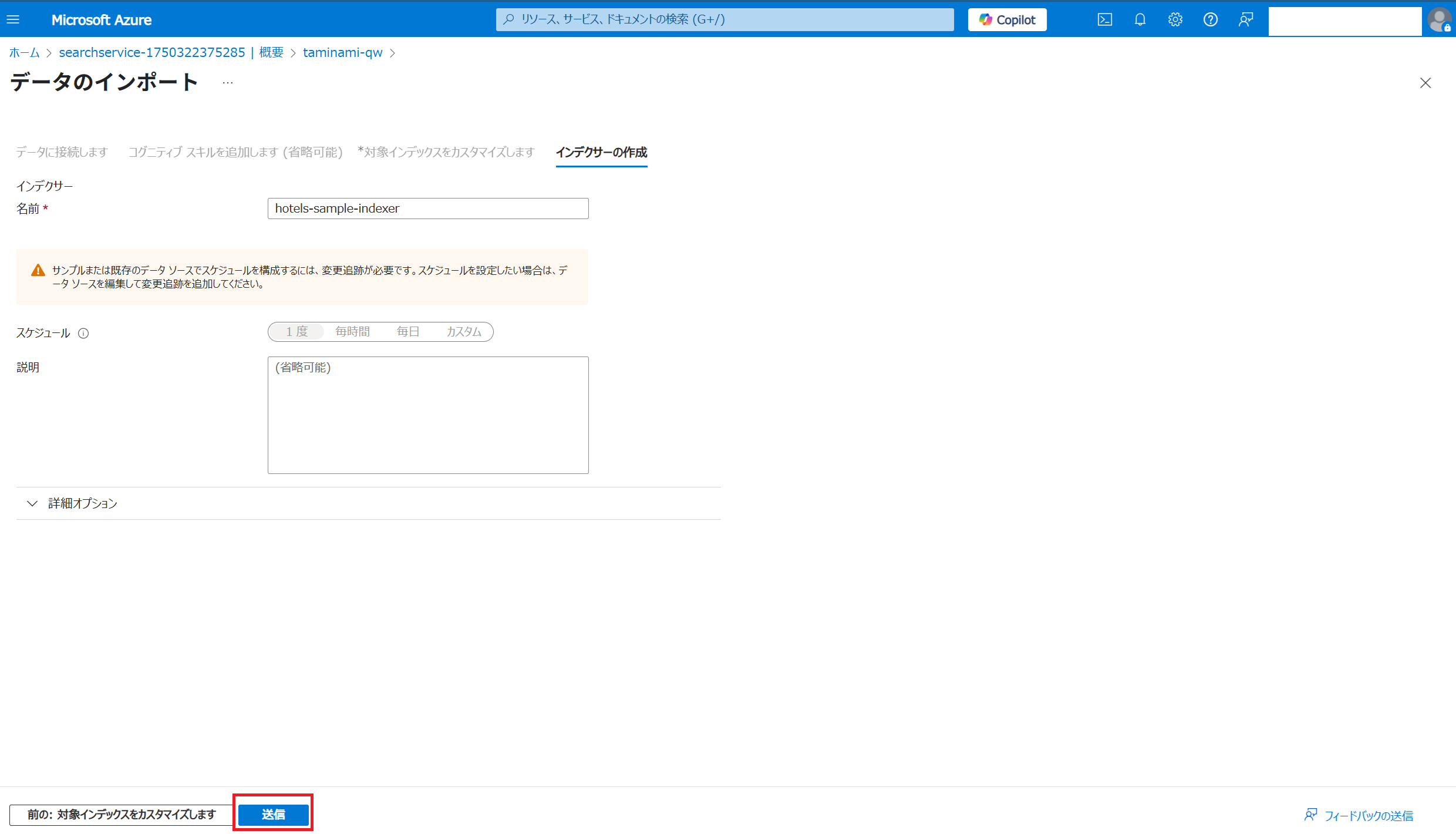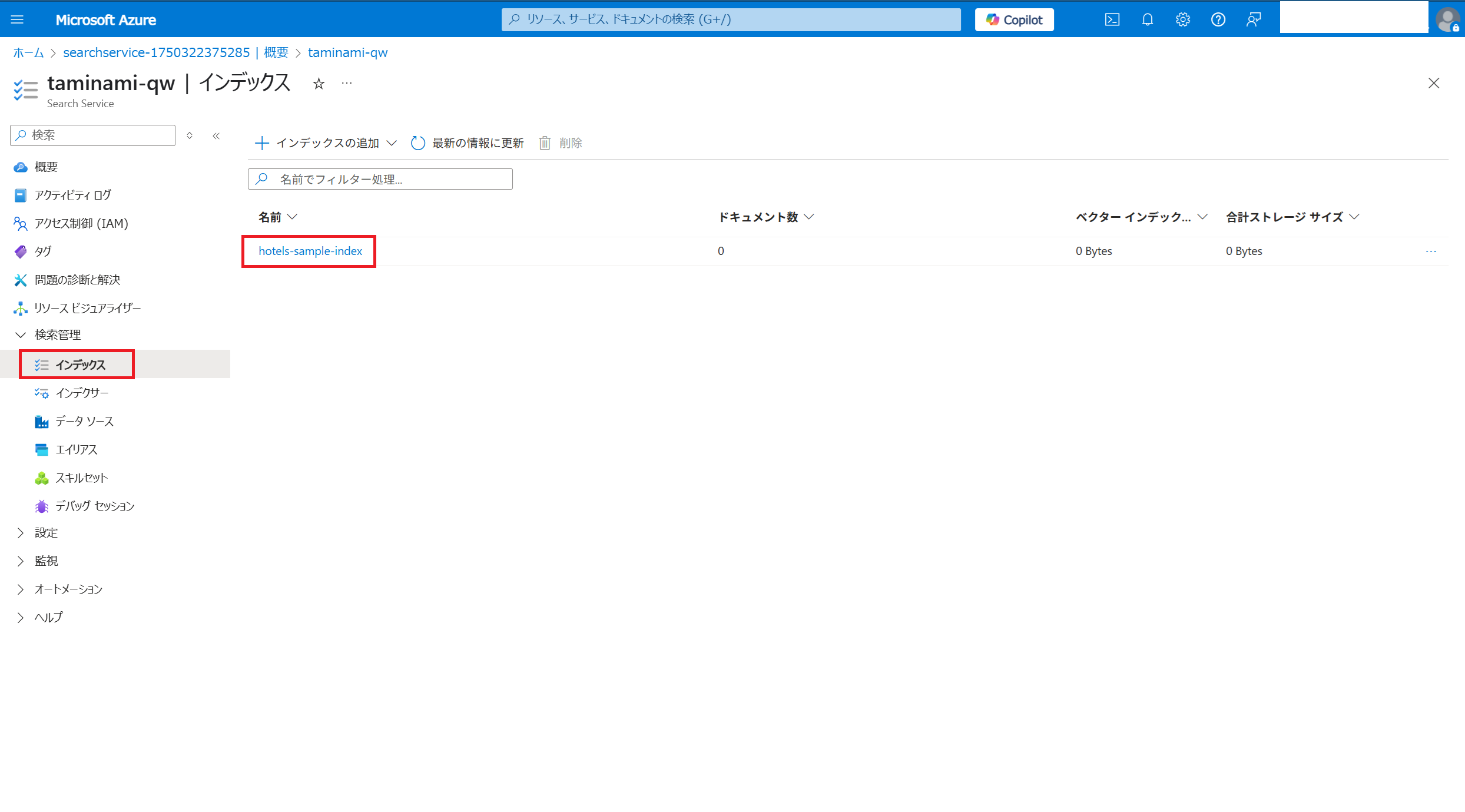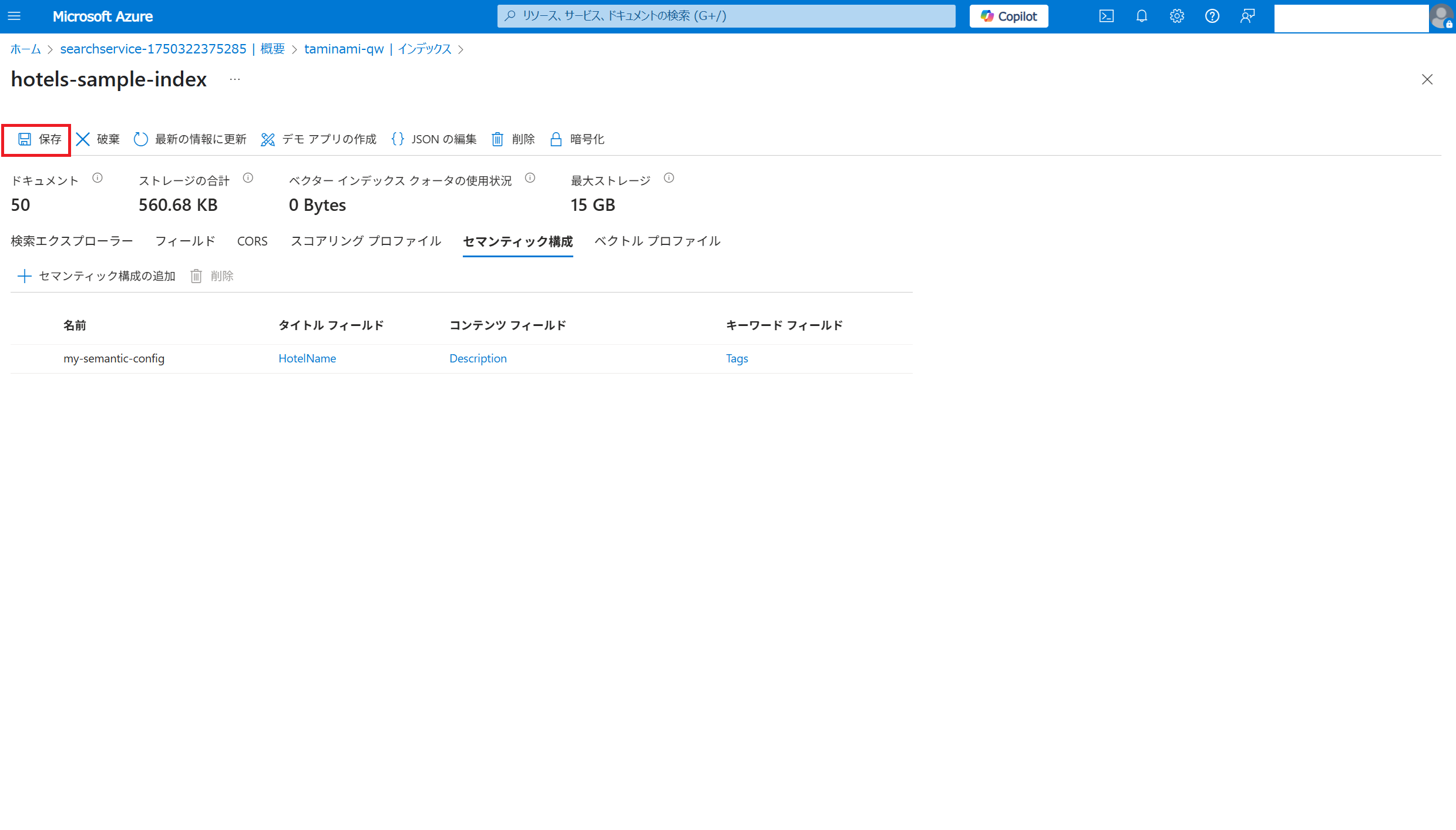 画面が切り替わったら「保存」します。以上でAzure AI Search側の準備は完了です。