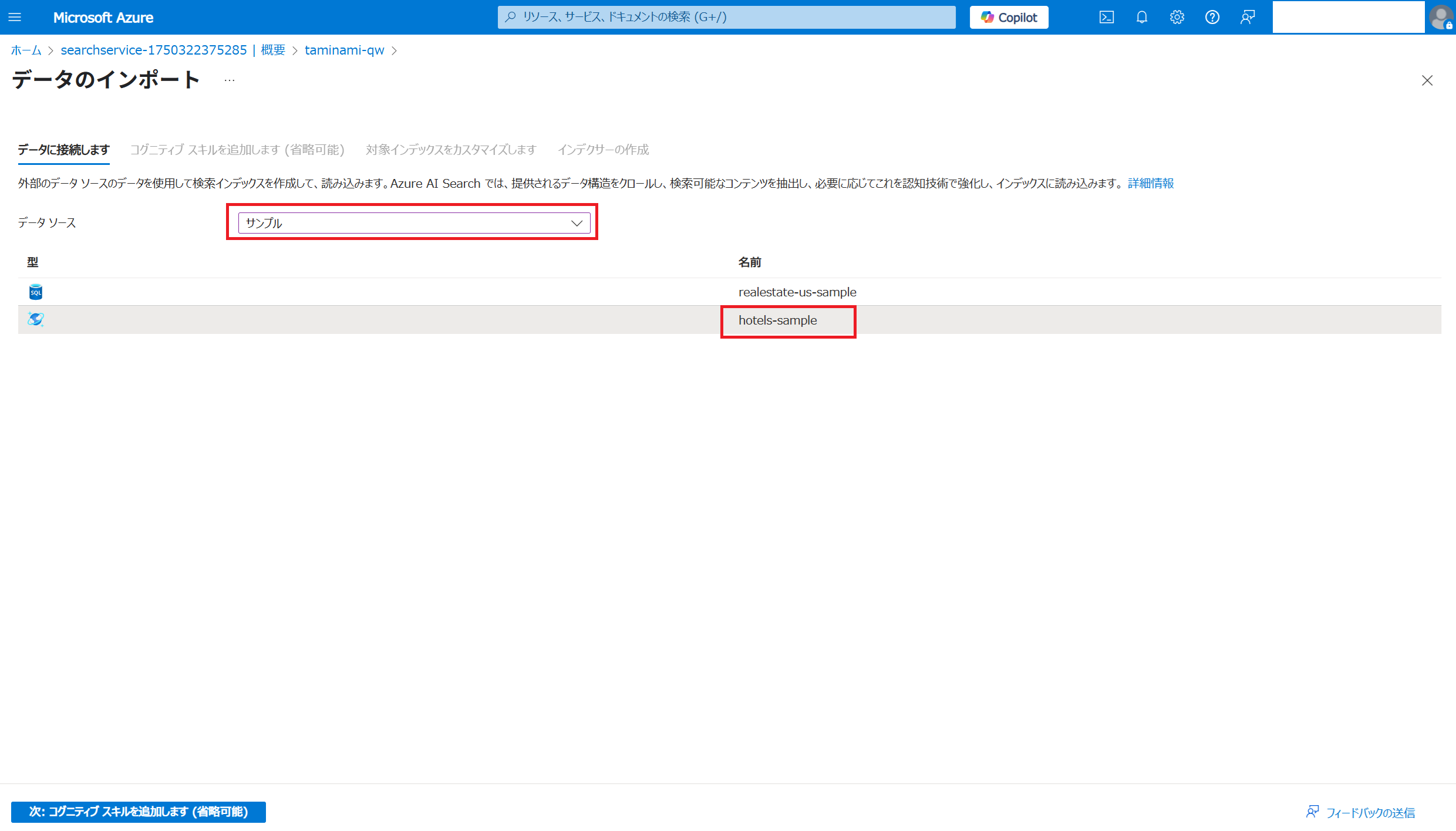データソースで「サンプル」を選択し、「hotels-sample」をクリックします。