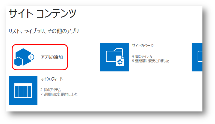 サイトコンテンツの「アプリの追加」から追加することが可能です。