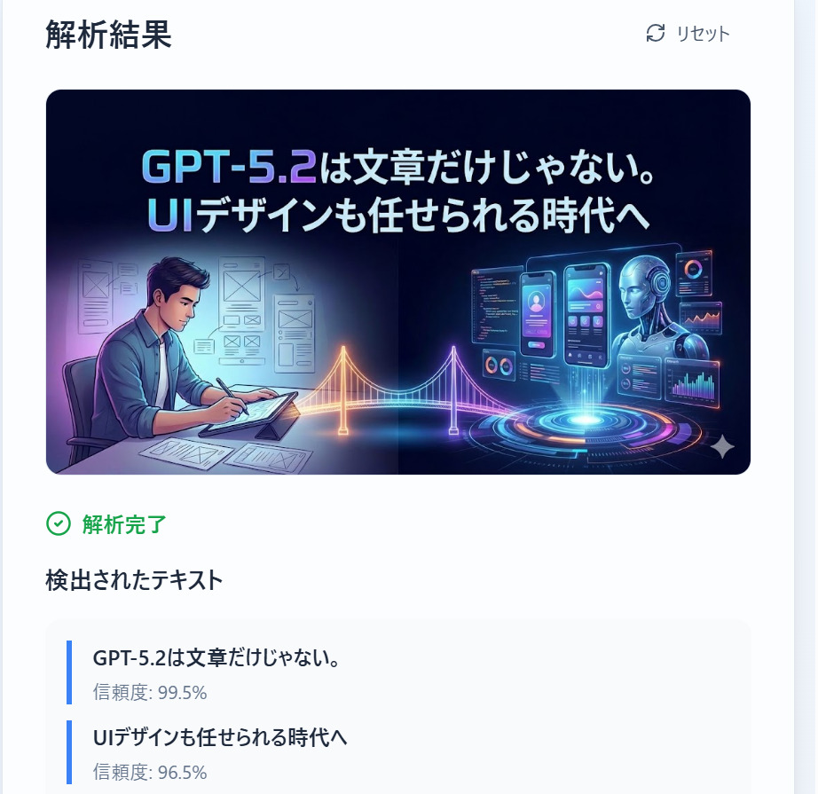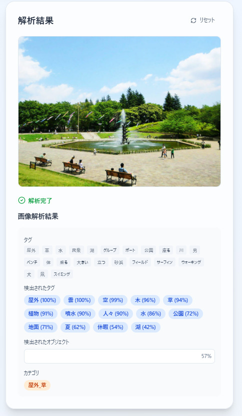画像を解析すると、以下のような情報が取得できます。- 写っている物や人物の内容(例:人、犬、車、建物など)