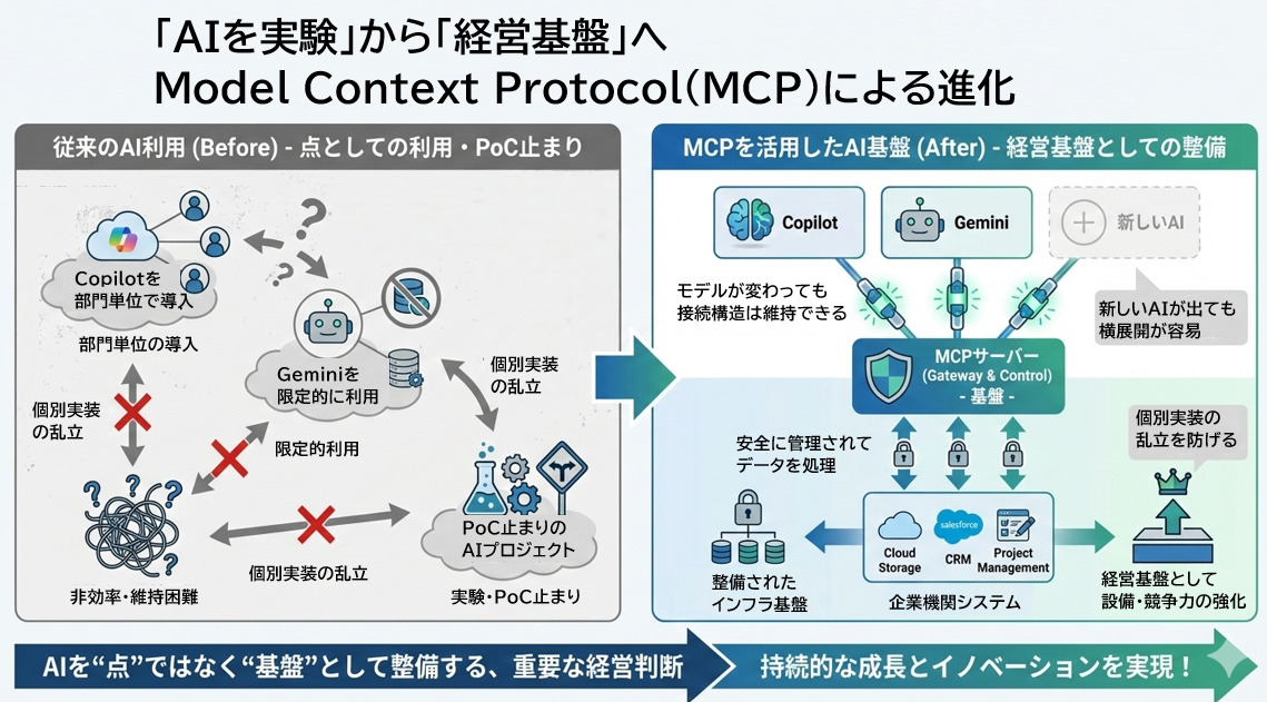 AIと業務システムをつなぐ設計が標準化されていないからです。