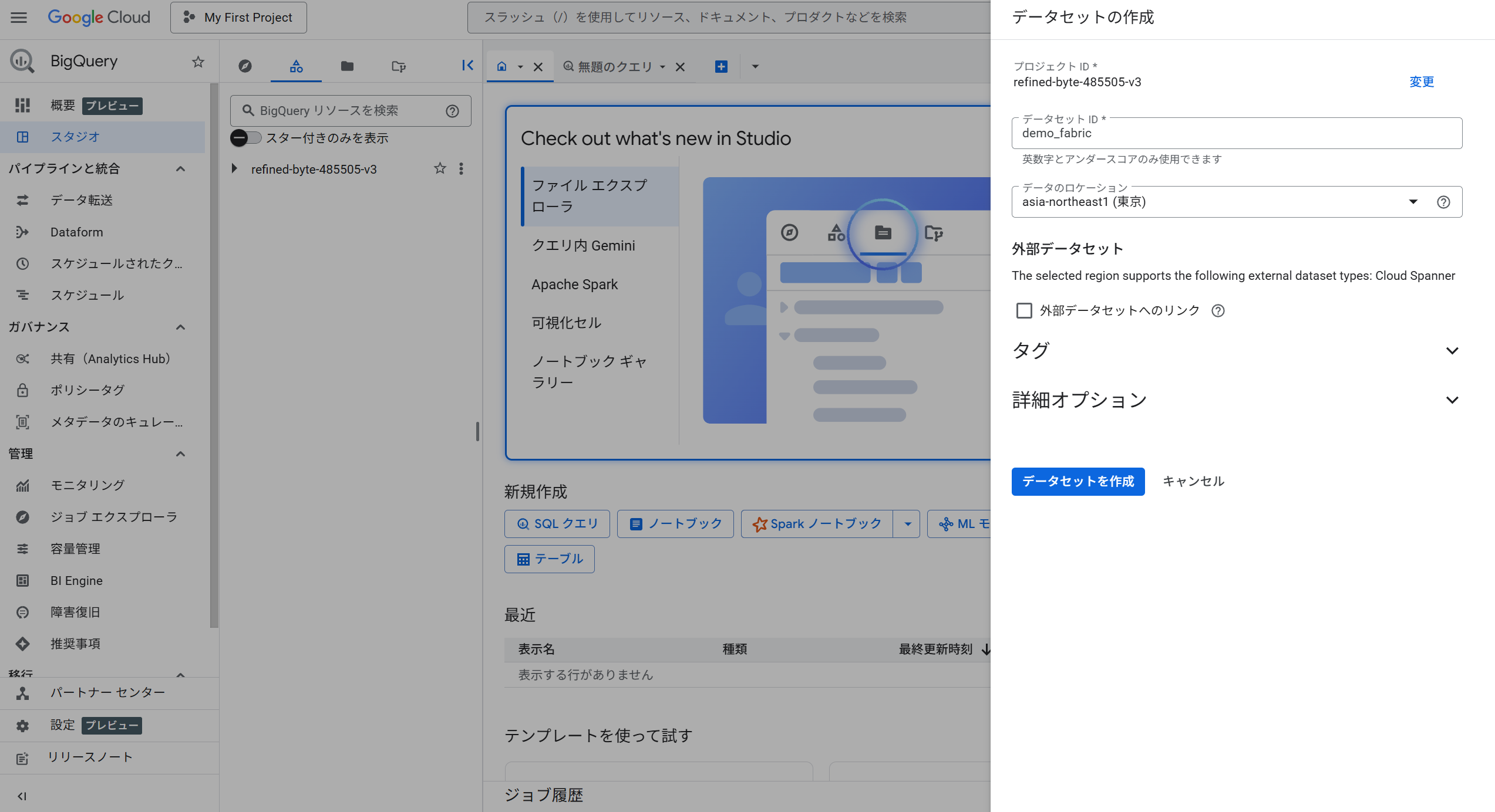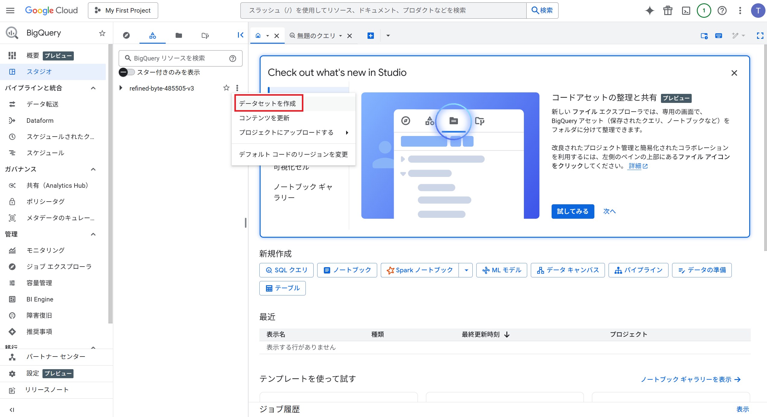 まずは検証用のBigQueryを用意します。(既に環境を持っている方は飛ばしてください。)