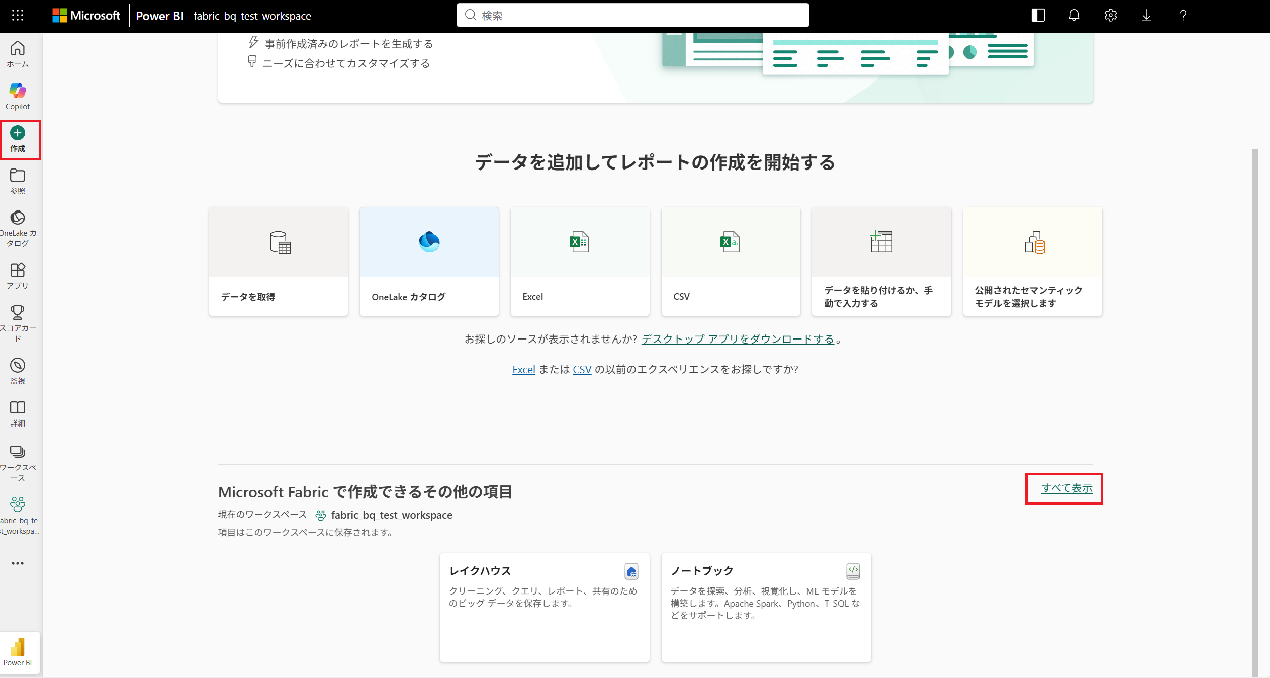 以上でGoogle Cloud側の設定は完了です。続いてFabricにアクセスをし「作成」画面から「すべてを表示」します。