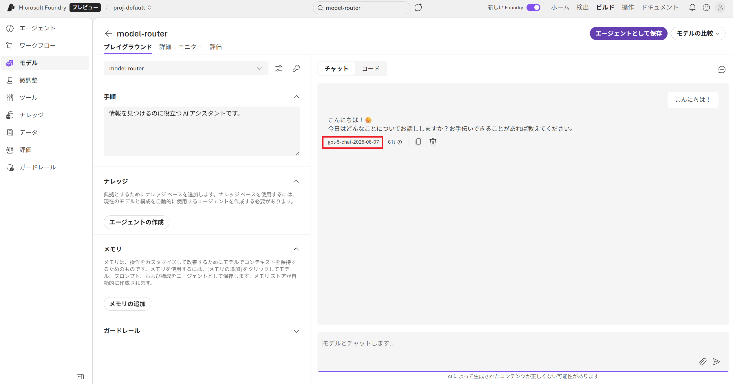 Microsoft Foundryのモデルルータ-機能を実際に試してみます。