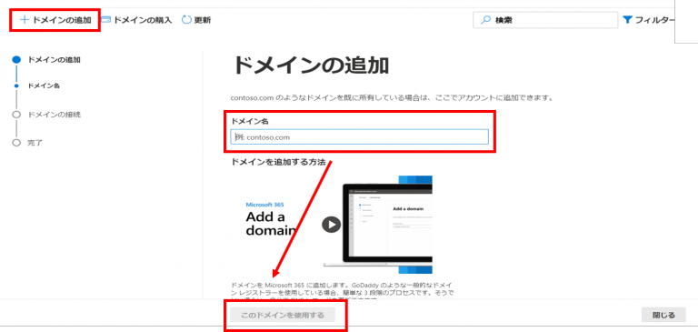 では、Microsoft365でカスタムドメインを登録する流れをご紹介します。