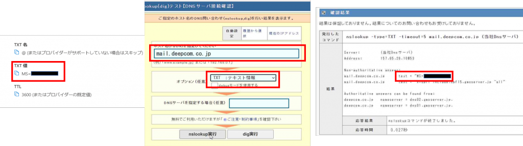TXT値の値が同じになっていれば、無事に登録できたことになります。