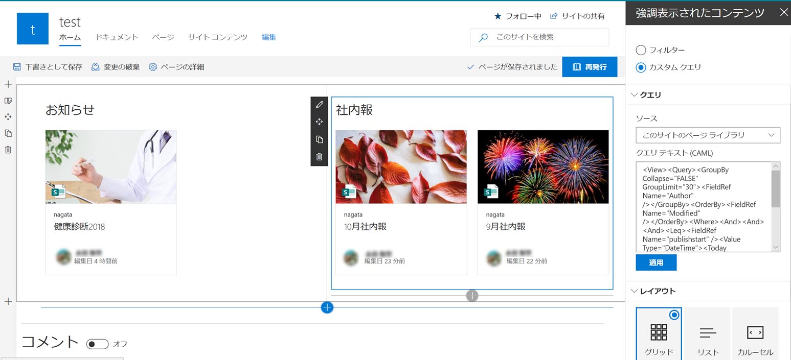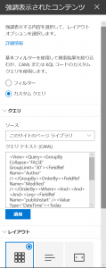 9月のアップデートにより、強調表示されたコンテンツWebパーツにクエリテキスト(CAML)が記述出来るようになりました。