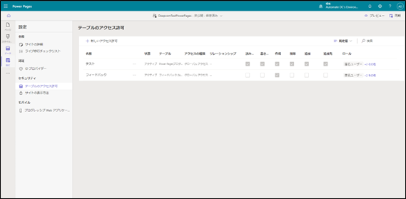Power Pages Webサイト設定 テーブルへのアクセス許可編集