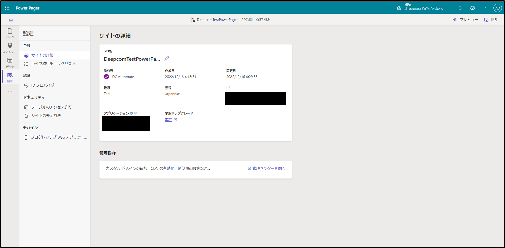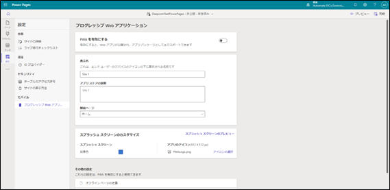 Power Pages Webサイト設定 全般編集