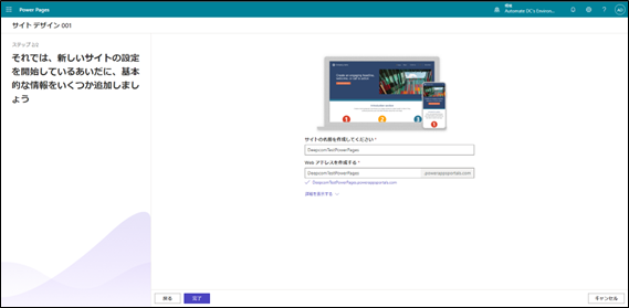 Power Pages サイト名&Webアドレス入力