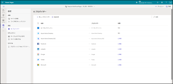 Power Pages Webサイト設定 認証編集