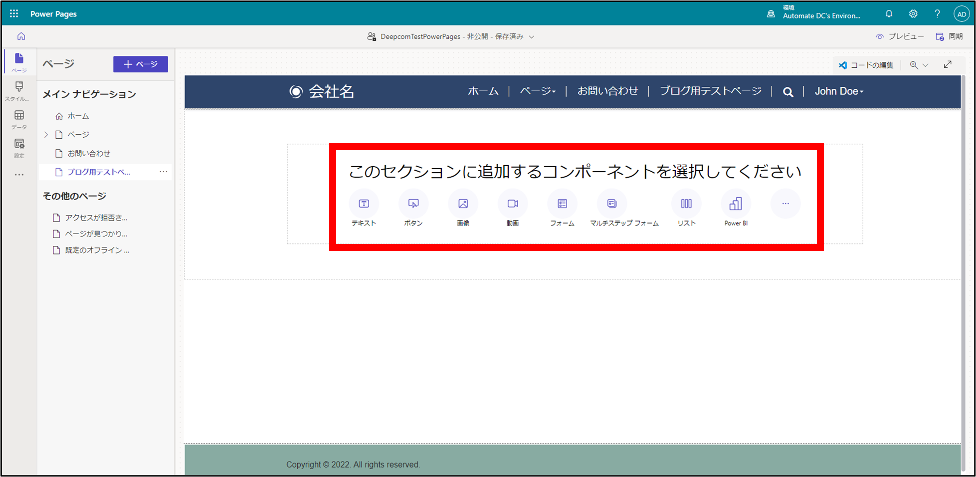 Power Pages ページ編集コンポーネント リスト設置完了
