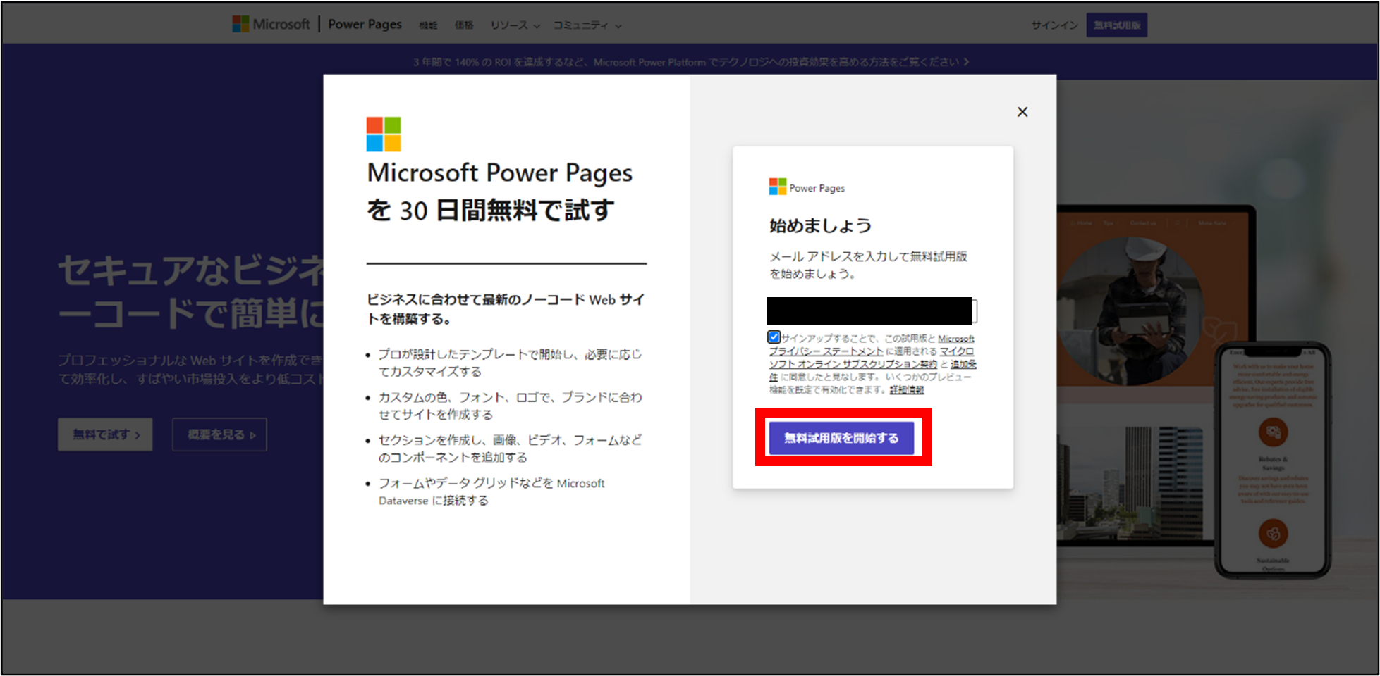 Power Pages 無料試用版登録