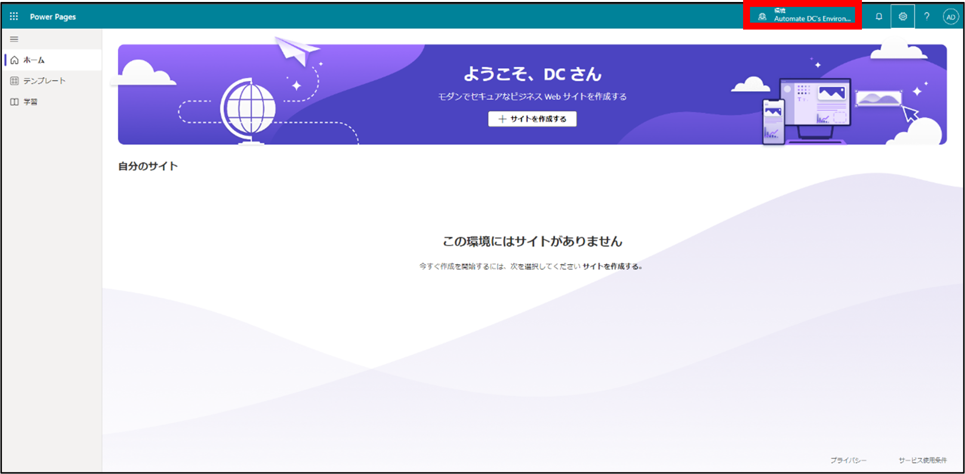 Power Pages Webサイト作成開始