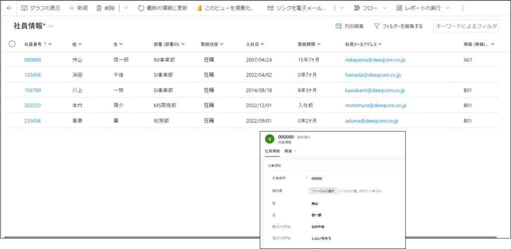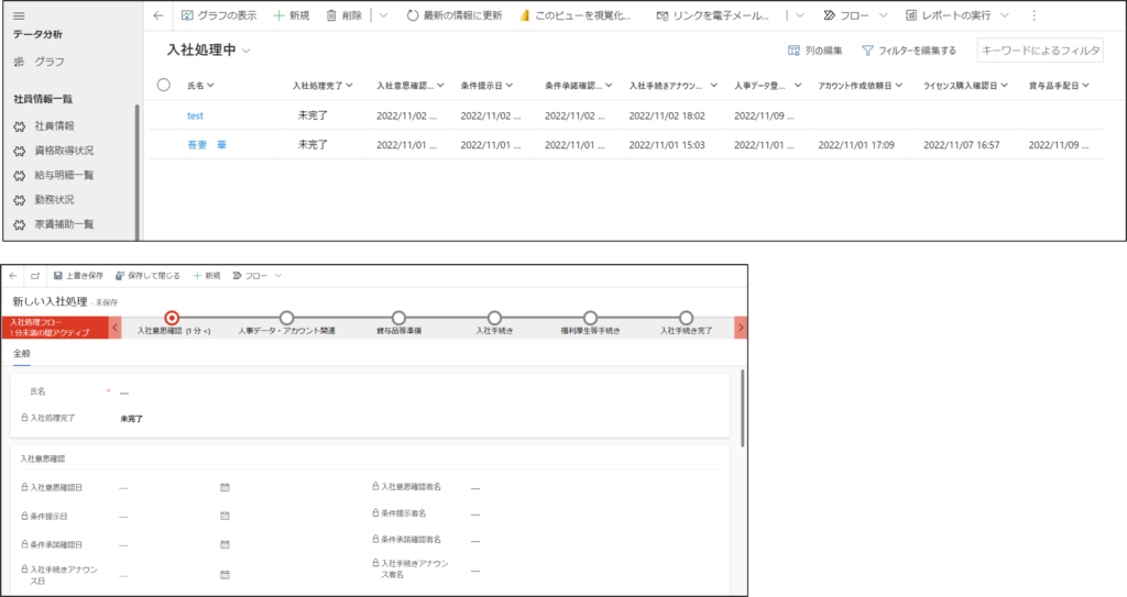 PowerAppsモデル駆動型アプリにより、社員情報の管理・分析、入退職処理の進捗管理が可能!