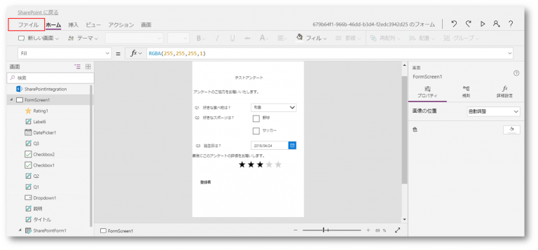 フォームの編集が終了したら、【ファイル】をクリックします。