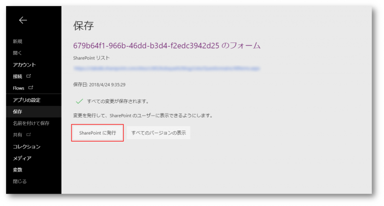 【SharePointを発行】をクリックします。