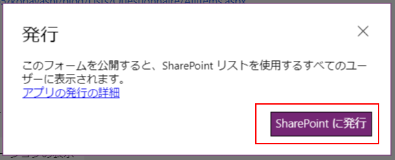 続けてポップアップの【SharePointに発行】をクリックします。
