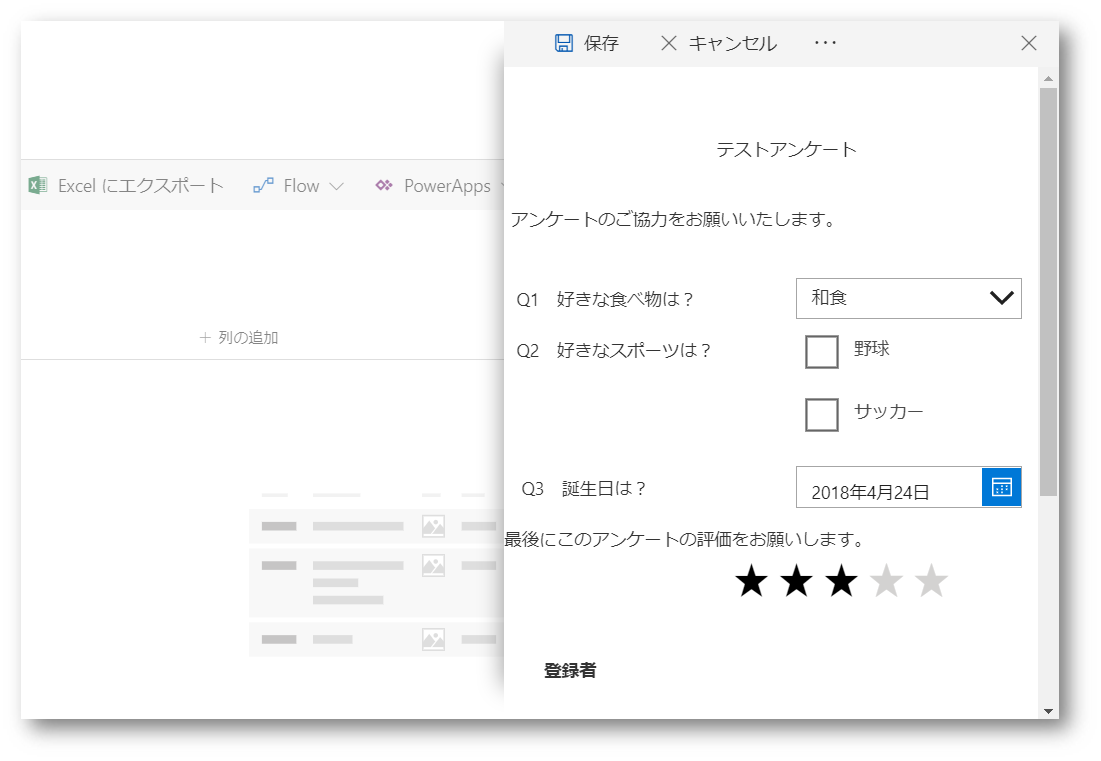 今回はアンケートフォームを作成してみたいと思います。SharePointでアンケートリストが既に用意されておりますが、Power Appsにて挑戦します!