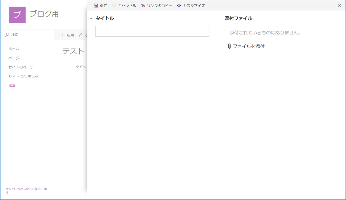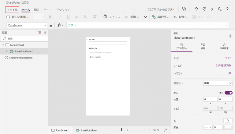 編集するフォームをPowerAppsで開きます。開く方法は以前の記事で紹介しています。
