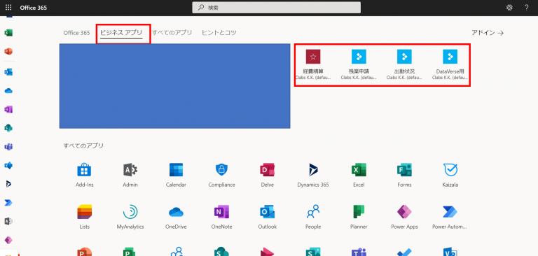また、作成したアプリは、Microsoft365ホームにビジネスアプリとして表示されます。