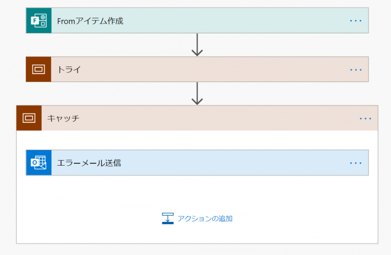 エラー発生都度メールが欲しいといった場合も、プログラムのTry-Catchのようなイメージで、エラーが発生したタイミングで通知を送信することも可能です。