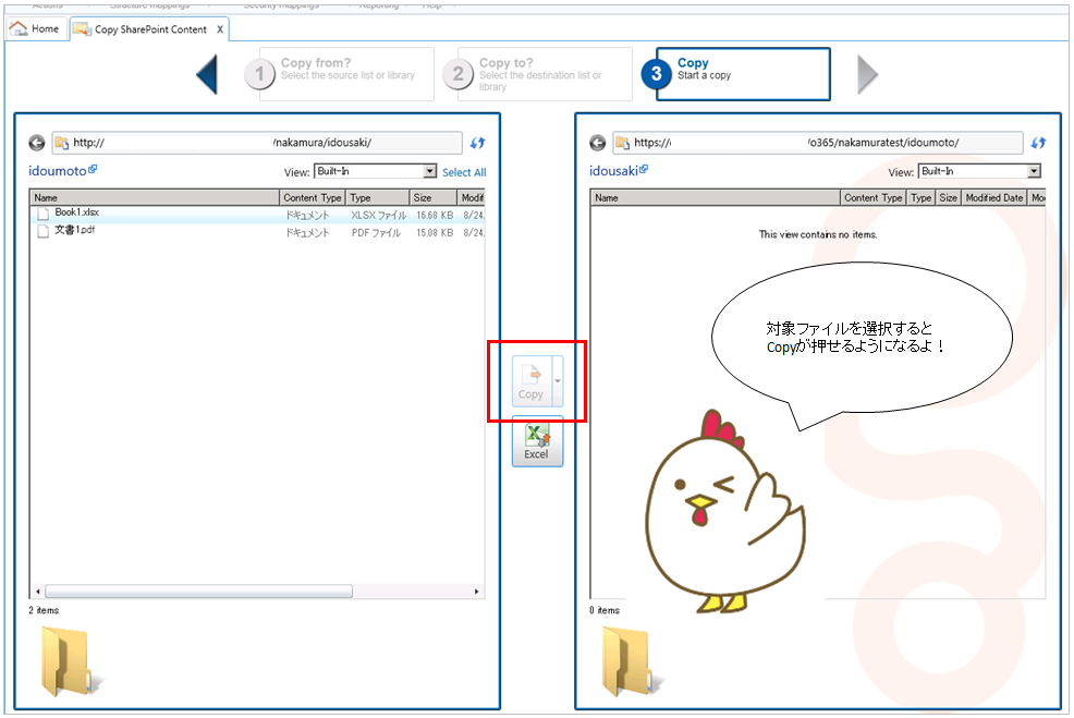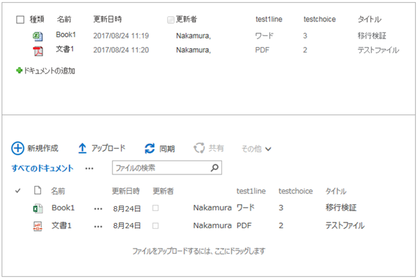 コピー先のドキュメントライブラリを確認してみますと…