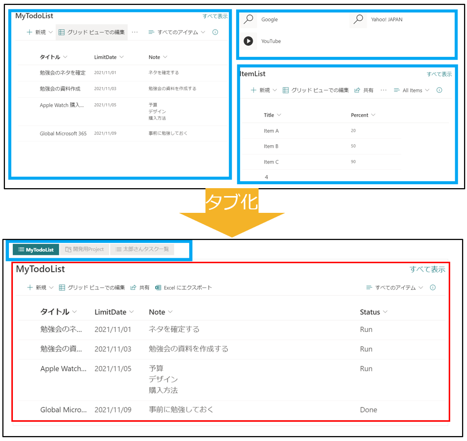 SharePointのコンテンツをタブ化しサイトUIを向上