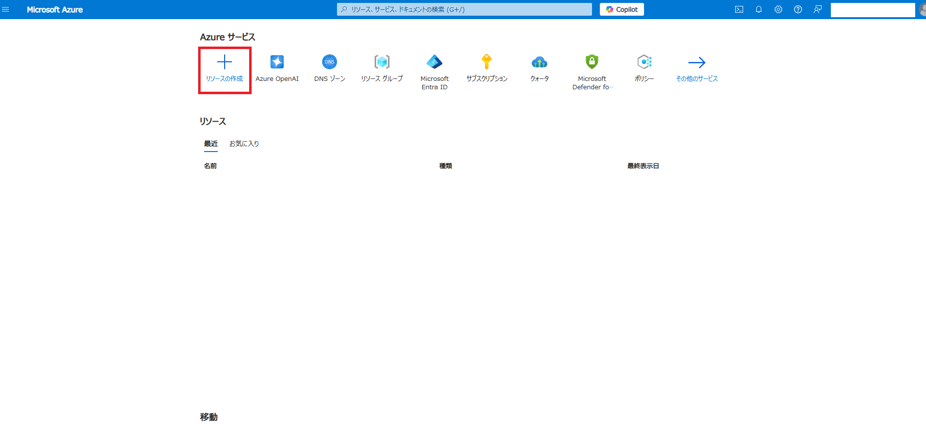 まず、Azureポータルにログインをし「+リソースの作成」を選択します。